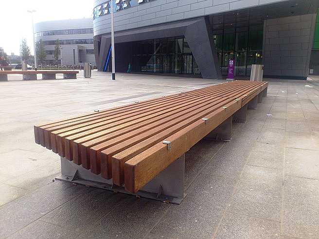 Blueton was asked by the client to manufactured 3no ref 086.01sst 9mts long benches with custom end details, as a seating feature to the New Flagship Building main entrance plaza at Robert Gordon University, Aberdeen, Scotland.