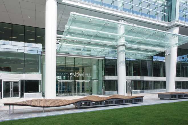 2 Snowhill is the second office building of this successful scheme located in the heart of the Birmingham’s Colmore Business District adjacent to Snow Hill Station. Blueton was asked by the client to manufactured 11no Custom ref 086.04sst benches 2mts to 12mts long, as a seating feature to complement the new design lead office building.