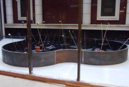 Blueton were asked by the renowned garden designer Emma Plunket to supply & install a custom corten steel planter for a central courtyard in a refurbished office block. There were several challenges involved in this project, the first was designing such a large planter from 3no intersecting 6mts circles, secondly was manufacturing it in easy to handle sections which could be lifted by two men into the central courtyard with no vechicle access. Finally, having the restrictions on delivery, a waiting time of just 15 minutes!