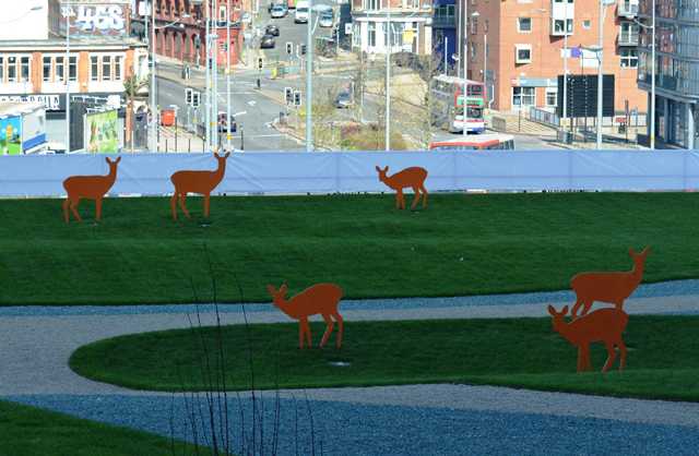 Hyland Edgar Drivers idea to convert an empty Snowhill 3 site , into a piece of countryside, was inspired. Blueton were asked to create a herd of deer profiles for the project, we think they look great, what a way to enhance a empty site!