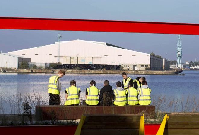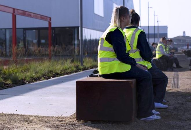 Marine grade timber seating for Wirral Metropolitan College, Liverpool, England, 2015