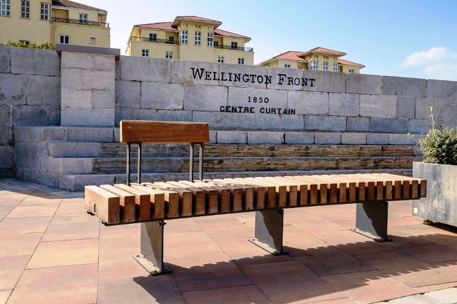 Description: Wellington Front (1850) is a long stretch of curtain wall that forms part of the Line Wall Curtain. It stands on the site of the old city wall built during the Moorish period and subsequently modified by the Spanish and British.