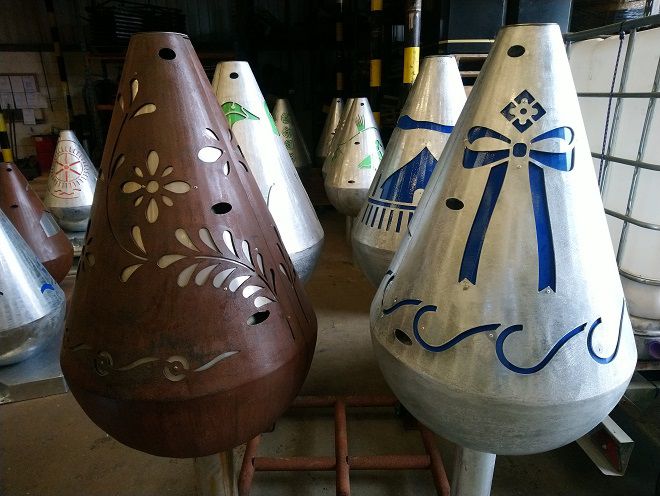 Garnock Connection Sculpture trail installed in North Ayrshire. The ‘droplet markers’ are placed in Irvine, Kilwinning, the Garnock Valley, the Three Towns and Lochwinnoch. Each sculpture has an individual QR code which can be scanned to show the area’s heritage and habitats, a website and app where you can view and create trails, and a fact about the area. Made in Corten steel & mild steel with galvanised finish, these colourful sculptures denote different areas & historic moments of Ayrshire