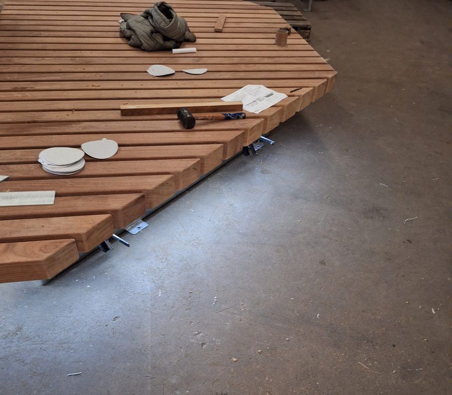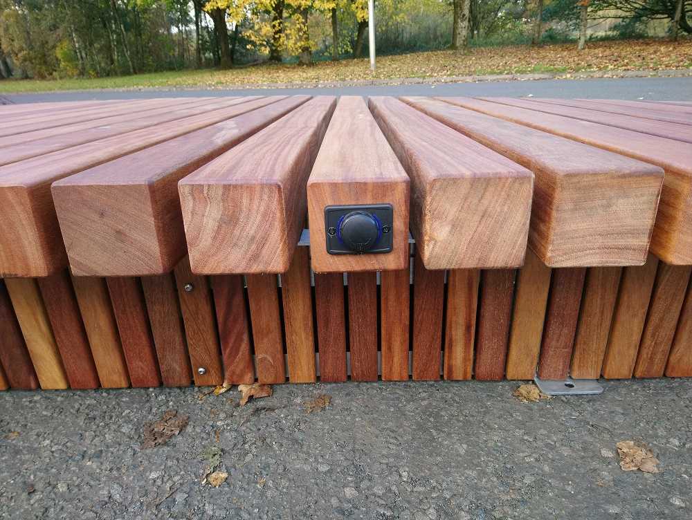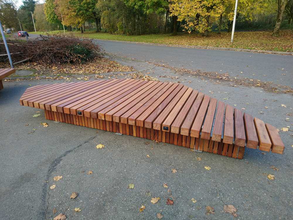 Custom Seating Islands with Certified Cumaru Hardwood Slats, galvanised steel subframe, LED Lighting & USB charging points to suit clients requirements.