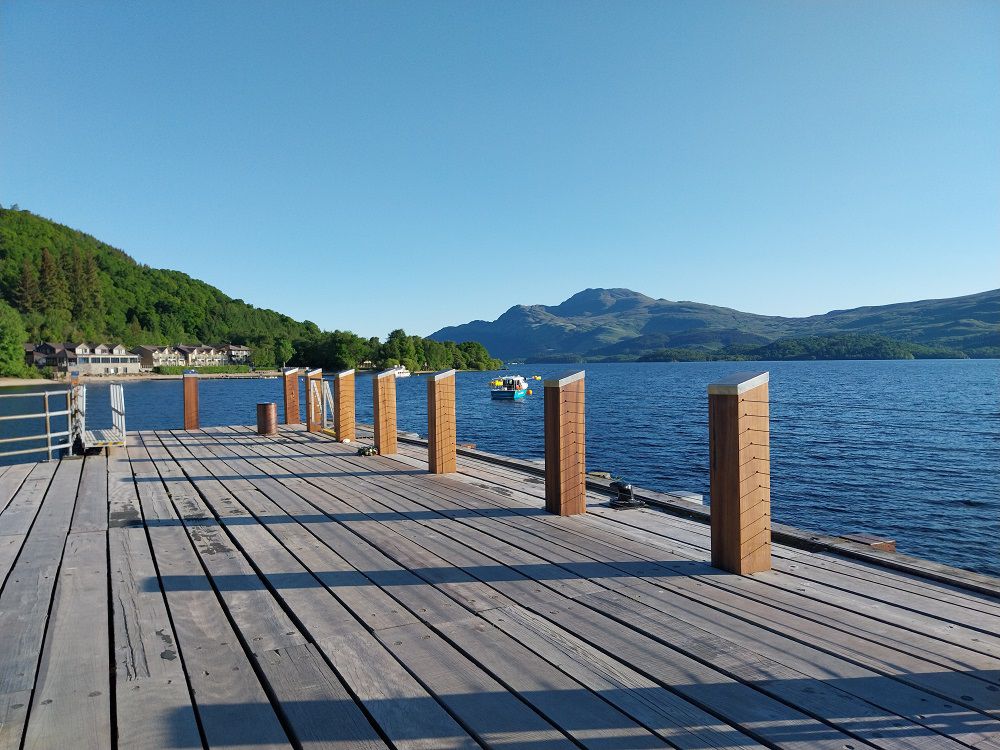 Loch Lomond & The Trossachs National Park was redeveloping Luss Pier and asked Blueton to manufacture new posts, made from Reclaimed Marine Grade Hardwood with Grade 316 s/steel caps.