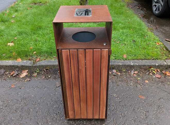 Ref 046.01cst Corten Steel & Timber Litter Bin