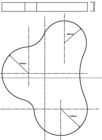 Dimensions - 6500mm long x 4800mm wide x 400mm high - consisting of 3no intersecting circles (custom sizes - can form any shape or size, round, oval or retangular)
