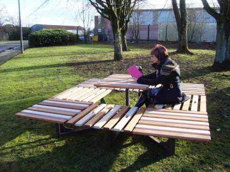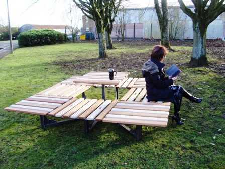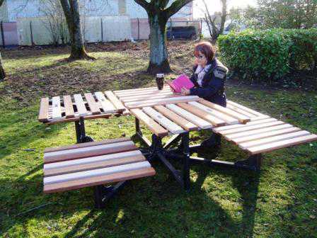 "A new concept in indoor & outdoor public table with adjustable seat/table tops"