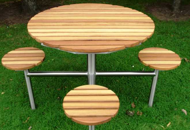 Ref 0842 Stainless Steel & Timber Table Set