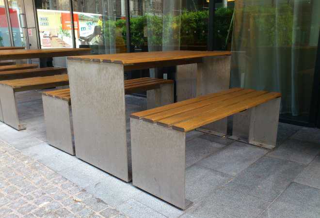Ref 084PB Stainless Steel & Timber Table Set