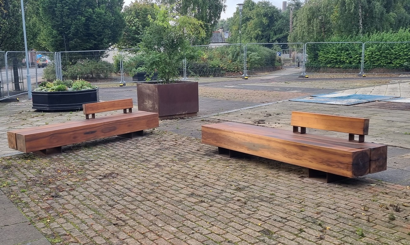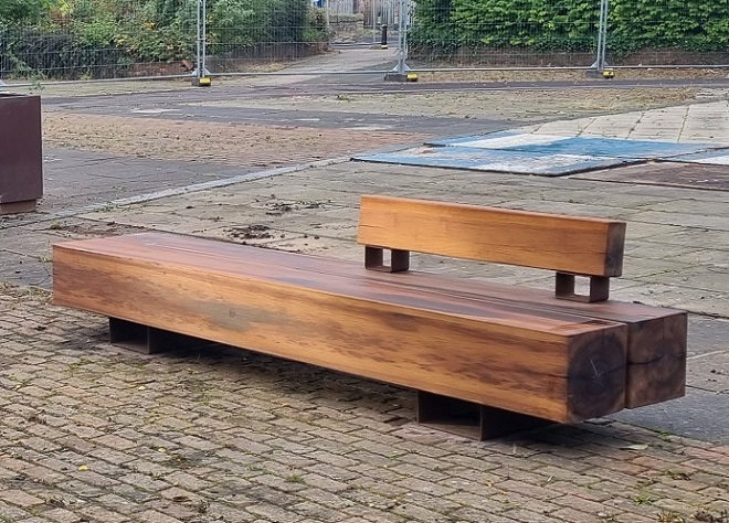 Ref 0804.33DBt Double Beam Hardwood Bench with Part Backrest