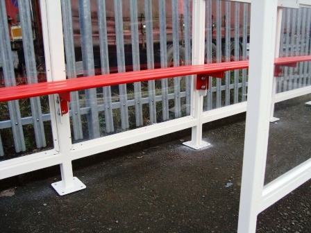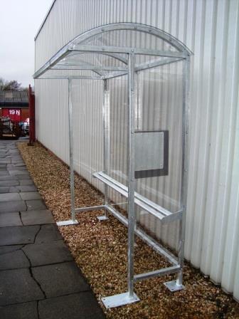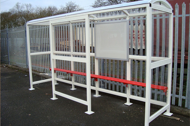 Shown 5000mm long open fronted with centre panel, perch seat & timetable case